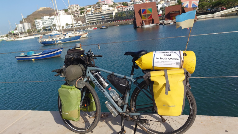 Un ucraniano hacía barco stop en la pasarela. Estaba dando la vuelta al mundo en bici en un proyecto caritativo y buscaba un barco que le llevara a él con su bici a sudamérica. Casi nada. Hay gente pató.