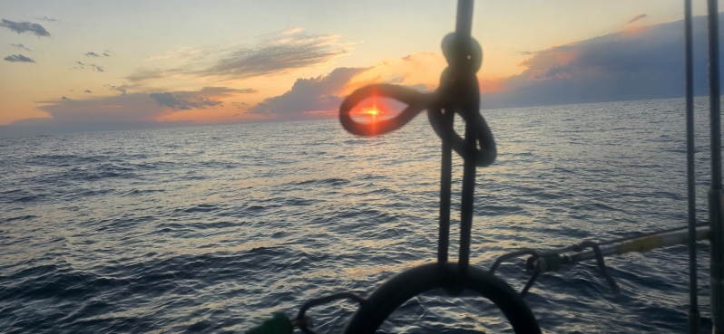 Pero nada es para siempre, el viento se para y tengo que arrancar motor. Andamos toda la noche a motor.