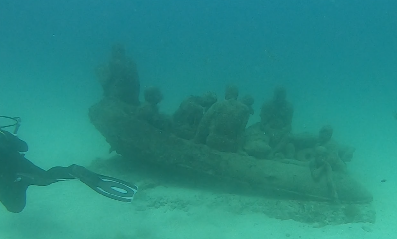 La primera inmersión es en el Museo Atlántico. Obra del artista y activista Jason deCaires Taylor. Tiene realizados tres museos de este estilo. En un cemento respetuoso con el océano al tener un ph neutro, James crea bellos museos esculturas y pecios para donde además de disfrutar de la vida submarina te puedas llevar un mensaje de concienzación. Vale la pena.